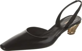 Ferragamo Leather Slingback Pumps Black Semi-Pointed Toes Buckle Closure at Ankles Unfortunately, due to restrictions, this item may not be eligible for shipping in all areas. Read more