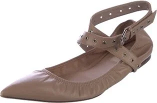 Valentino Leather Ballet Flats Neutrals Pointed-Toes Crossover Straps & Buckle Closure at Ankles Designer Fit: Flats by Valentino typically run a half size small. Unfortunately, due to restrictions, t Read more