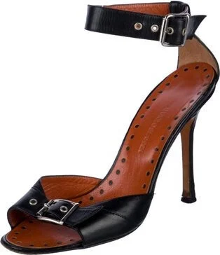 Manolo Blahnik Leather Sandals Black Multistrap Fit: This style typically runs narrow and a half size small. Unfortunately, due to restrictions, this item may not be eligible for shipping in all areas.