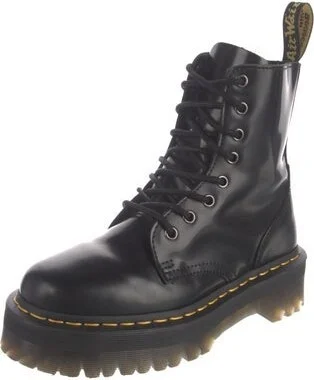Dr. Martens Leather Mid-Calf Combat Boots Black Round-Toes Platform Lace-Up Closure at Uppers Unfortunately, due to restrictions, this item may not be eligible for shipping in all areas. Read more