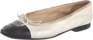 Chanel Leather Ballet Flats By Karl Lagerfeld White Interlocking CC Logo Grosgrain & Bow Accents Round-Toes Includes Dust Bag Designer Fit: This style typically runs narrow and a half size to a full s Read more
