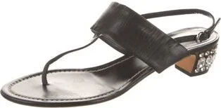 Miu Miu Leather Slingback Sandals Black Crystal Embellishments Straps & Buckle Closure at Ankles Unfortunately, due to restrictions, this item may not be eligible for shipping in all areas. Read more