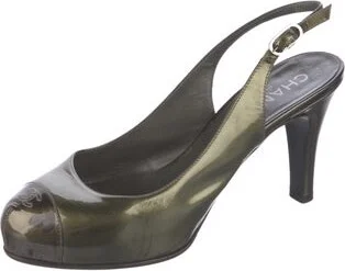 Chanel Vintage Slingback Pumps From the 2007 Collection by Karl Lagerfeld Green Patent Leather Interlocking CC Logo Round-Toes Buckle Closure at Ankles Designer Fit: This style typically runs narrow a Read more