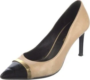 Saint Laurent Leather Pumps Neutrals Colorblock Pattern Pointed-Toes Designer Fit: Pumps by Saint Laurent typically run a half size small. Unfortunately, due to restrictions, this item may not be elig Read more