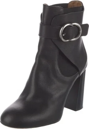 Chloé Leather Ankle Boots Black Round-Toes Wrap-Around Straps & Buckle Closure at Sides Fit: This style typically runs a half size small. Unfortunately, due to restrictions, this item may not be eligible for shipping in all areas.