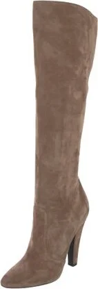 Saint Laurent Suede Knee-High Boots Neutrals Semi-Pointed Toes Exposed Zip Closure at Sides Fit: This style typically runs a half size small.