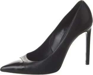 Saint Laurent Leather Pumps Black Pointed-Toes Designer Fit: Pumps by Saint Laurent typically run a half size small. Unfortunately, due to restrictions, this item may not be eligible for shipping in all areas.