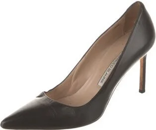 Manolo Blahnik Leather Pumps Black Pointed-Toes Fit: This style typically runs narrow and a half size small. Unfortunately, due to restrictions, this item may not be eligible for shipping in all areas Read more
