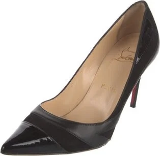 Christian Louboutin Youlahop 85 Pumps Black Leather Suede & Patent Leather Trim Pointed-Toes Includes Box & Dust Bag Designer Fit: This style typically runs a half size to a full size small. Unfortuna Read more