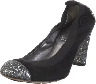 Chanel Suede Pumps From the Fall 2009 Collection by Karl Lagerfeld Black Interlocking CC Logo Leather Trim Round-Toes with Glitter Accents Designer Fit: This style typically runs narrow and a half siz Read more