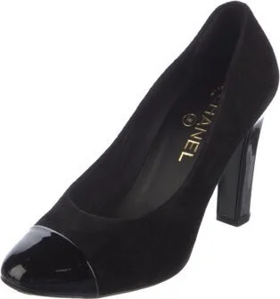 Chanel Suede Pumps From the Fall 2018 Collection by Karl Lagerfeld Black Interlocking CC Logo Patent Leather Trim Round-Toes Includes Box & Dust Bag Designer Fit: This style typically runs narrow and Read more