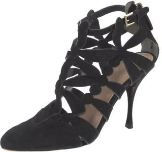 Tory Burch Suede Pumps Blue Round-Toes with Lasercut Accents Crossover Straps & Buckle Closure at Ankles Designer Fit: This designer typically runs true to size. Read more