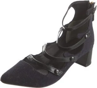 Tory Burch Felt Pumps Black Semi-Pointed Toes Multistrap & Exposed Zip Closure at Ankles Designer Fit: This designer typically runs true to size.