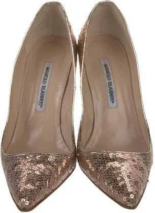 Manolo Blahnik Sequins Pumps Neutrals Semi-Pointed Toes with Sequin Embellishments Includes Dust Bag Fit: This style typically runs narrow and a half size small. Read more