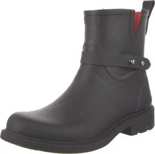 Rag & Bone Rubber Ankle Rain Boots Black Round-Toes Wrap-Around Straps & Exposed Zip Closure at Sides Designer Fit: Boots by Rag & Bone typically run a half size small. Read more
