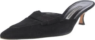Manolo Blahnik Suede Mules Black Semi-Pointed Toes with Bow Accents Fit: This style typically runs narrow and a half size small.