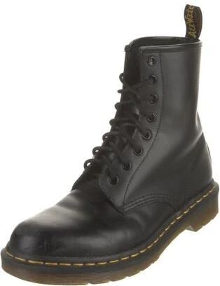 Dr. Martens Leather Ankle Combat Boots Black Rubber Trim Round-Toes Lace-Up Closure at Uppers Unfortunately, due to restrictions, this item may not be eligible for shipping in all areas. Read more