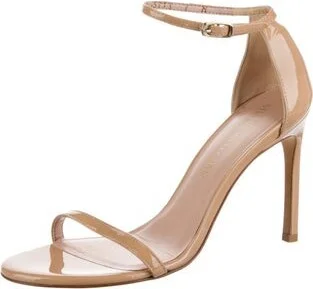 Stuart Weitzman Patent Leather Sandals Neutrals Wrap-Around Straps & Buckle Closure at Ankles Designer Fit: This designer typically runs true to size.