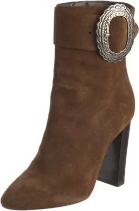 Saint Laurent Suede Ankle Boots Brown Semi-Pointed Toes Concealed Zip Closure at Sides Fit: This style typically runs a half size small.