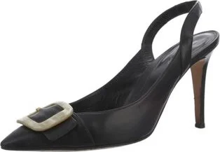 Sergio Rossi Leather Slingback Pumps Black Semi-Pointed Toes Buckle Closure at Ankles Unfortunately, due to restrictions, this item may not be eligible for shipping in all areas. Read more