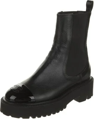 Chanel Leather Mid-Calf Chelsea Boots From the 2022 Collection by Virginie Viard Black Interlocking CC Logo Round-Toes Platform Includes Dust Bag Fit: This style typically runs a full size small. Unfo Read more