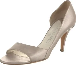 Chanel Leather D'Orsay Pumps Metallic & Neutrals Interlocking CC Logo Peep-Toes Crossover Straps Designer Fit: This style typically runs narrow and a half size small. Unfortunately, due to restriction Read more