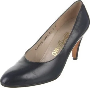 Salvatore Ferragamo Leather Pumps Blue Semi-Pointed Toes Includes Box Fit: This style typically runs a half size small. Unfortunately, due to restrictions, this item may not be eligible for shipping in all areas.