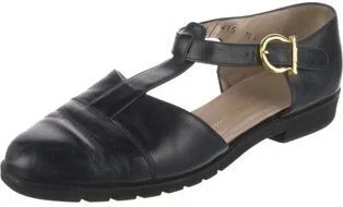 Salvatore Ferragamo Leather D'Orsay Flats Blue Semi-Pointed Toes Multistrap & Buckle Closure at Ankles Fit: This style typically runs a half size small. Unfortunately, due to restrictions, this item m Read more