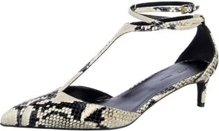 Khaite Leather T-Strap Pumps Neutrals Animal Print Leather Trim Pointed-Toes with Leather Trim Embellishment Wrap-Around Straps & Buckle Closure at Ankles Unfortunately, due to restrictions, this item Read more