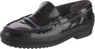 Tod's Patent Leather Loafers Black Semi-Pointed Toes Platform Read more