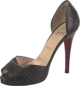Christian Louboutin Leather D'Orsay Pumps Black Peep-Toes with Pleated Accents Platform Designer Fit: This style typically runs a half size to a full size small. Unfortunately, due to restrictions, this item may not be eligible for shipping in all areas.