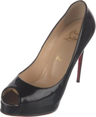 Christian Louboutin Patent Leather Pumps Black Peep-Toes with Cutout Accent Platform Designer Fit: This style typically runs a half size to a full size small. Read more