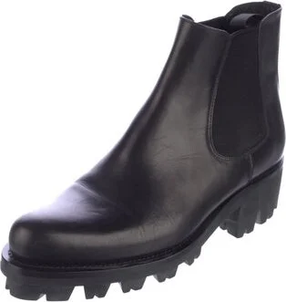 Prada Leather Ankle Chelsea Boots Black Round-Toes Platform Fit: This style typically runs a half size small. Unfortunately, due to restrictions, this item may not be eligible for shipping in all areas.