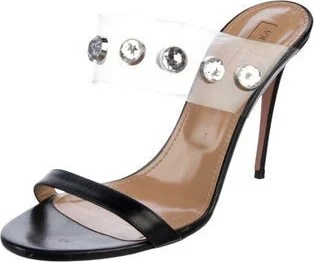 Aquazzura Leather Slides Black Crystal Embellishments & PVC Trim Unfortunately, due to restrictions, this item may not be eligible for shipping in all areas. Read more