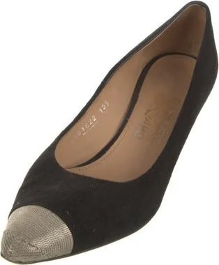 Salvatore Ferragamo Suede Pumps Black Colorblock Pattern Semi-Pointed Toes Fit: This style typically runs a half size small. Read more