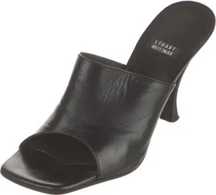 Stuart Weitzman Leather Mules Black Square-Toes Buckle Closure at Sides Includes Box Designer Fit: This designer typically runs true to size. Unfortunately, due to restrictions, this item may not be e Read more