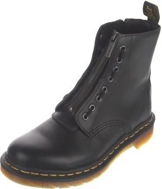 Dr. Martens Leather Ankle Combat Boots Black Round-Toes Platform Exposed Zip Closure at Uppers Unfortunately, due to restrictions, this item may not be eligible for shipping in all areas. Read more