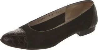 Salvatore Ferragamo Suede Ballet Flats Black Animal Print Leather Trim Semi-Pointed Toes Fit: This style typically runs a half size small. Read more
