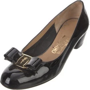 Salvatore Ferragamo Patent Leather Pumps Black Round-Toes with Bow Accents Includes Box Fit: This style typically runs a half size small. Read more