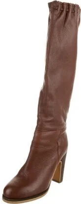See by Chloé Leather Knee-High Boots Brown Round-Toes Platform Unfortunately, due to restrictions, this item may not be eligible for shipping in all areas. Read more