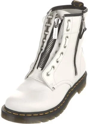 Dr. Martens Leather Ankle Combat Boots White Round-Toes Lace-Up Closure at Uppers Includes Box Unfortunately, due to restrictions, this item may not be eligible for shipping in all areas. Read more