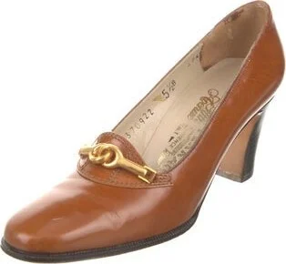 Salvatore Ferragamo Leather Pumps Brown Round-Toes Buckle Closure At Uppers Includes Box Fit: This style typically runs a half size small. Unfortunately, due to restrictions, this item may not be elig Read more