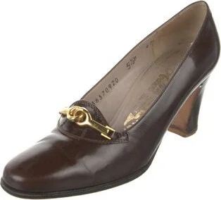 Salvatore Ferragamo Leather Pumps Brown Round-Toes Includes Box Fit: This style typically runs a half size small. Unfortunately, due to restrictions, this item may not be eligible for shipping in all areas.