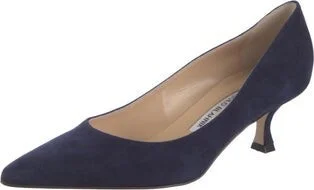 Manolo Blahnik Suede Pumps Blue Leather Trim Pointed-Toes Includes Box & Dust Bag Fit: This style typically runs narrow and a half size small.