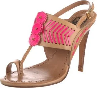 Tory Burch Leather Slingback Sandals Neutrals Colorblock Pattern Braided Accents Buckle Closure at Ankles Designer Fit: This designer typically runs true to size. Unfortunately, due to restrictions, this item may not be eligible for shipping in all areas.