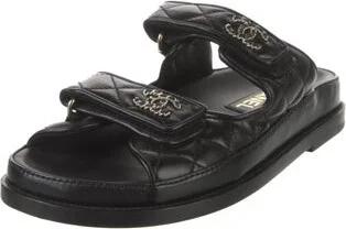 Chanel Leather Slides From the Spring 2024 Collection by Virginie Viard Black Interlocking CC Logo Multistrap & Velcro Closure at Uppers Designer Fit: This style typically runs narrow and a half size Read more