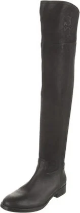 Tory Burch Leather Over-The-Knee Boots Black Round-Toes with Leather Trim Embellishment Zip Closures at Shafts Designer Fit: This designer typically runs true to size. Unfortunately, due to restrictio Read more