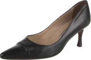 Manolo Blahnik Leather Pumps Black Semi-Pointed Toes Includes Dust Bag Fit: This style typically runs narrow and a half size small. Unfortunately, due to restrictions, this item may not be eligible fo Read more