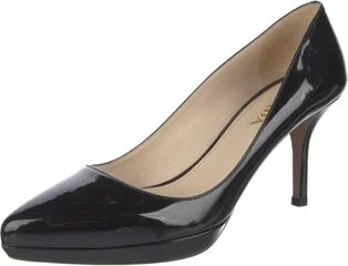 Prada Patent Leather Pumps Black Leather Trim Pointed-Toes Platform Includes Dust Bag Designer Fit: Pumps by Prada typically run a half size small.