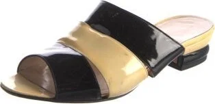 Salvatore Ferragamo Patent Leather Slides Neutrals Printed